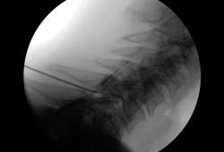 Onder röntgendoorlichting wordt de naald nauwkeurig gepositioneerd. De huid wordt eerst lokaal verdoofd, wat een kort branderig gevoel kan geven. Door deze verdoving voelt het inbrengen van de naald meestal enkel als druk. Eenmaal de juiste positie bereikt is, wordt het medicijnmengsel geïnjecteerd. Hierbij kan een warmtegevoel optreden in één of beide armen – dat is normaal.